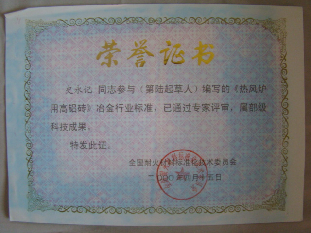 熱風(fēng)爐用低蠕變高鋁磚、高荷軟高鋁磚獲省科技進(jìn)步二等獎,微膨脹高鋁磚列入火炬計(jì)劃項(xiàng)目,炭素焙燒爐用特種高鋁磚已批準(zhǔn)國家專利
